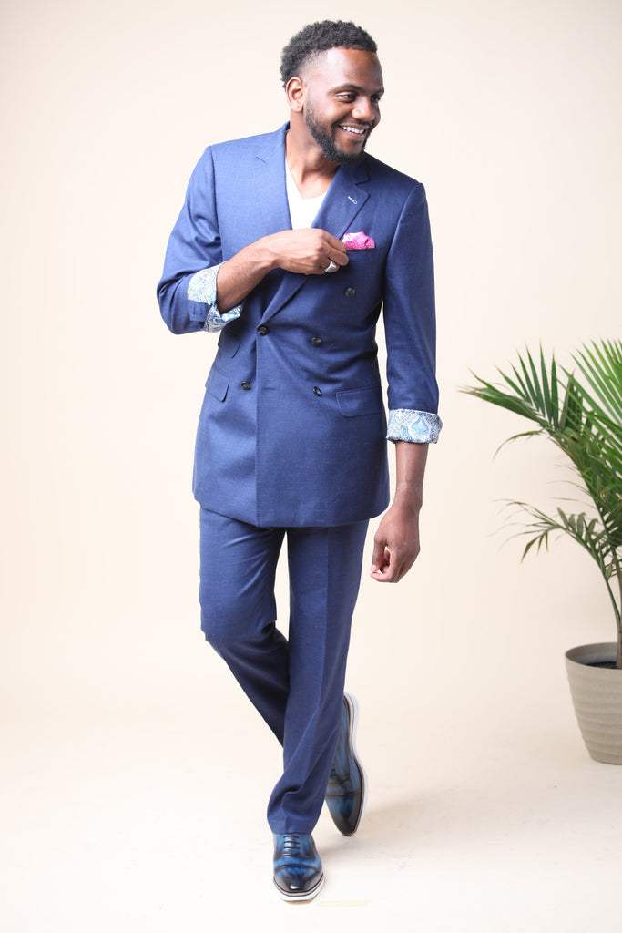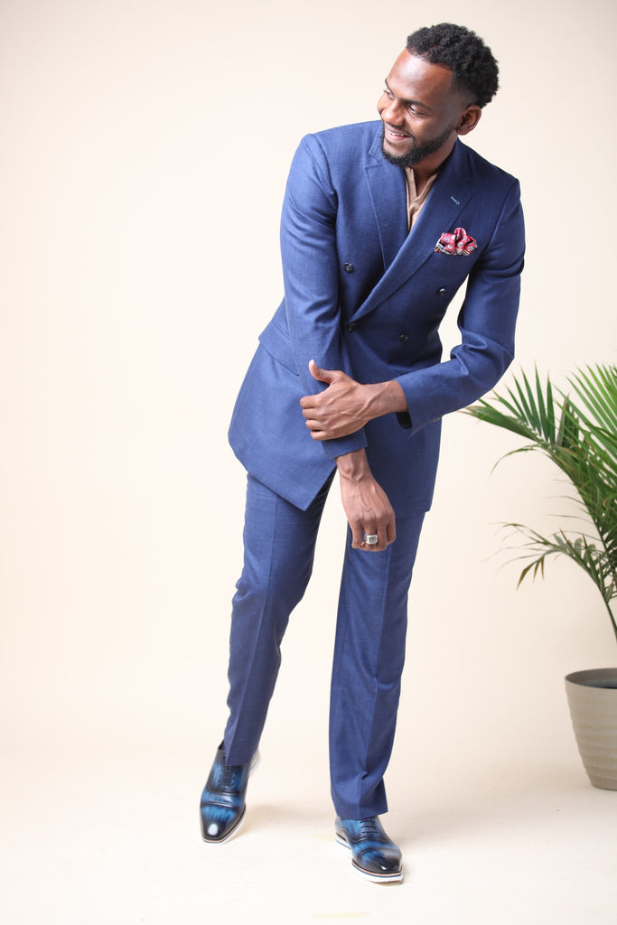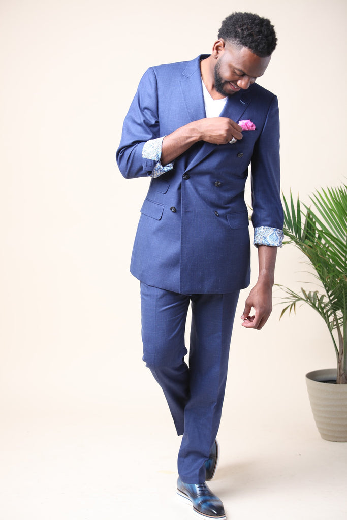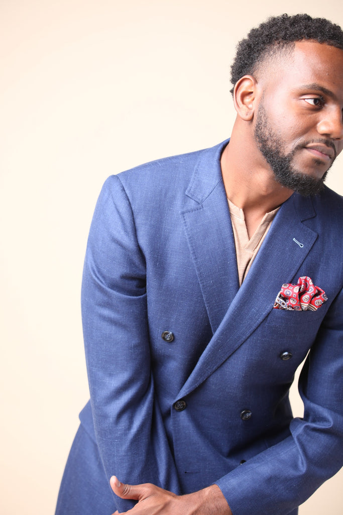 Blue - 71% Wool, 13% Linen, 14% Silk, 12% Tencel - Custom Suit Fabric