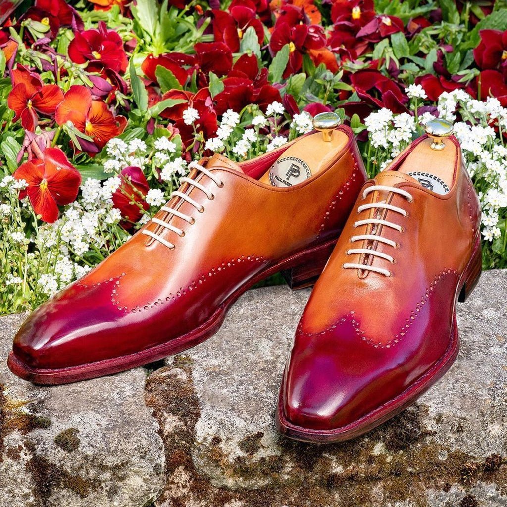 Paul Parkman Goodyear Welted Wingtip Oxfords, Bordeaux & Camel
