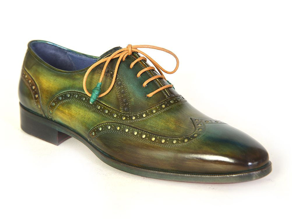 Paul Parkman Men's Wingtip Oxfords Green Hand-Painted Calfskin Shoes
