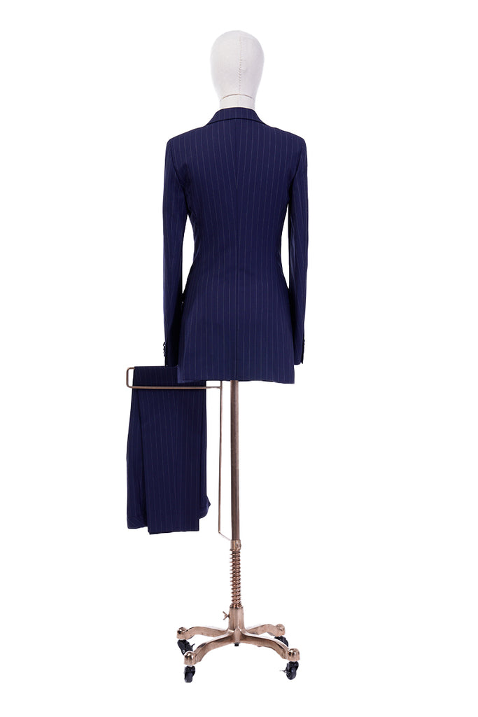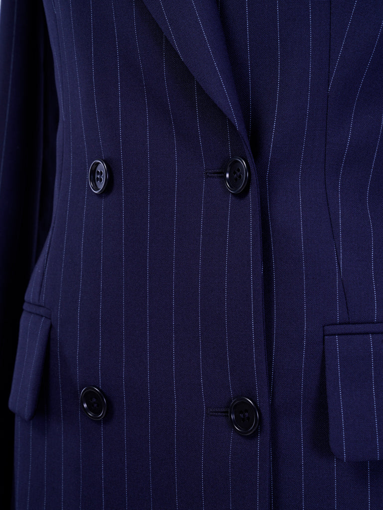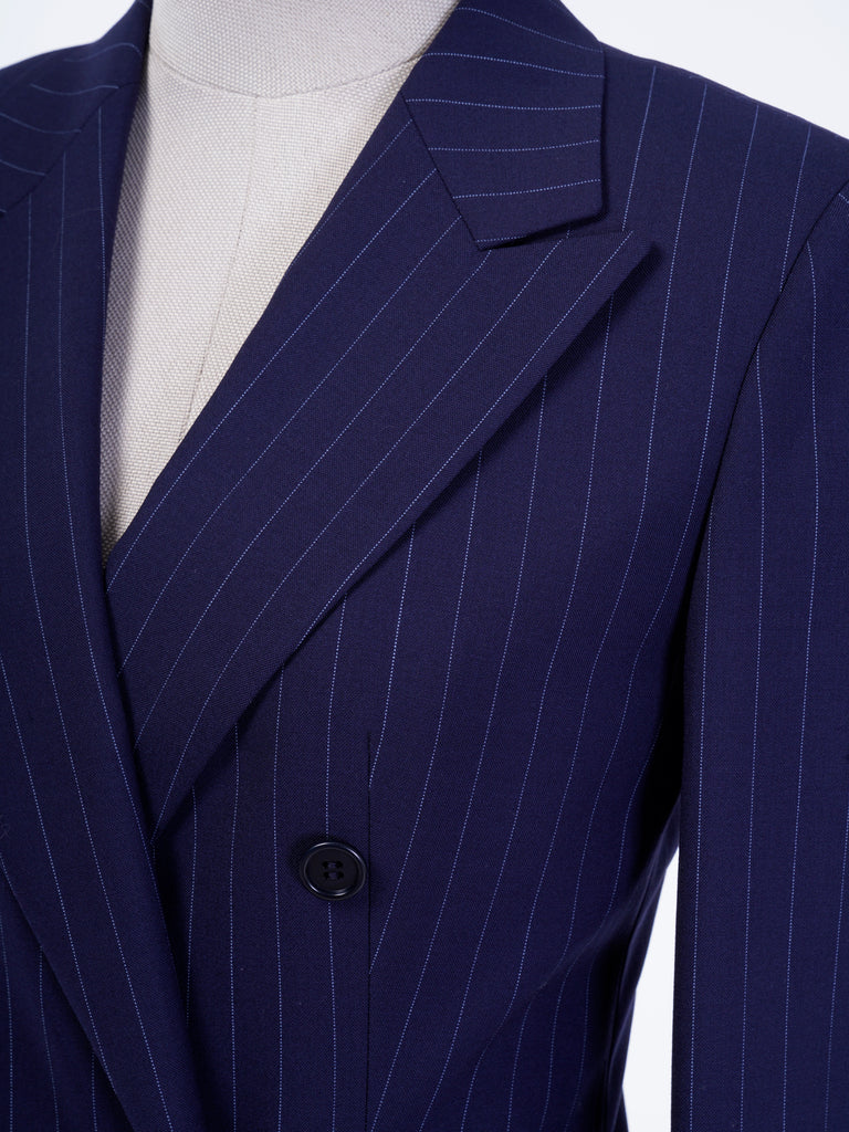 Women's Custom Pant Suit - Blue Pinstripe 100% Wool