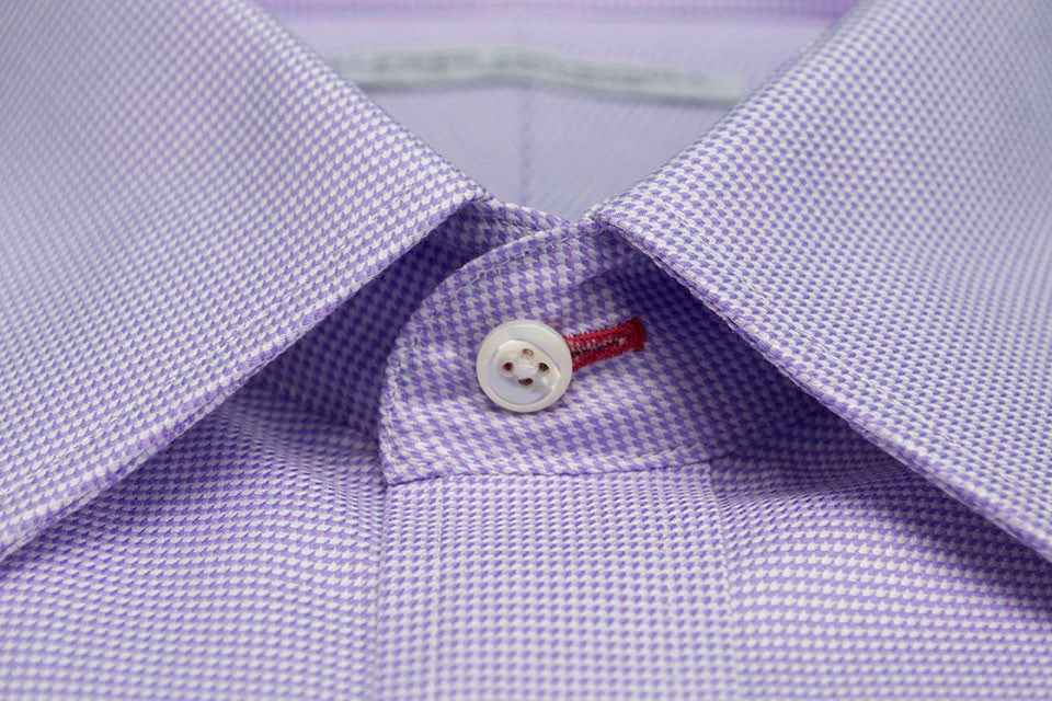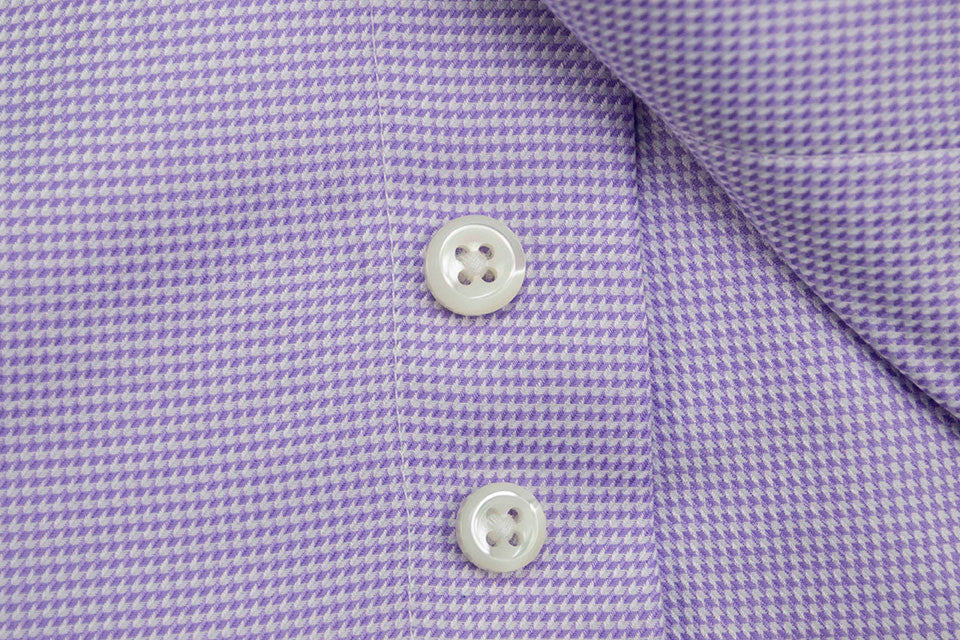 Look distinct while remaining comfortable with this purple houndstooth patterned dress shirt. Completely customizable to meet the customer's desired style, design and fit.