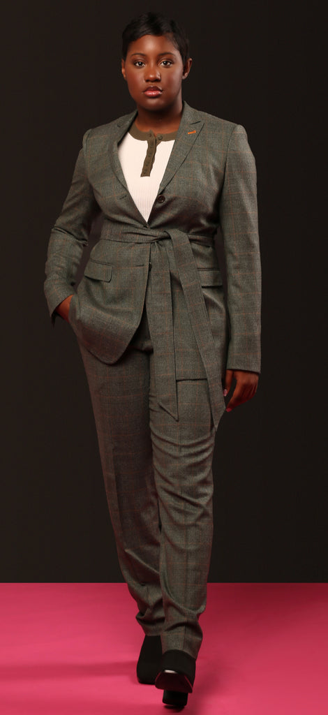 Women's Custom Pant Suit - Green Glen Plaid 100% Wool