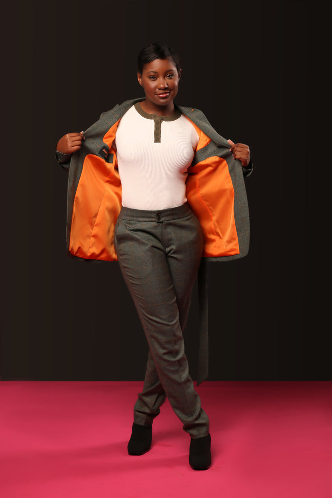 Choose your own unique style with our custom-made pant suit in green glen plaid 100% wool. Add your own personal touch to this timeless piece and express your individuality! With a variety of fabric colors to choose from, you can create your dream outfit with a turnaround time of 4-5 weeks.